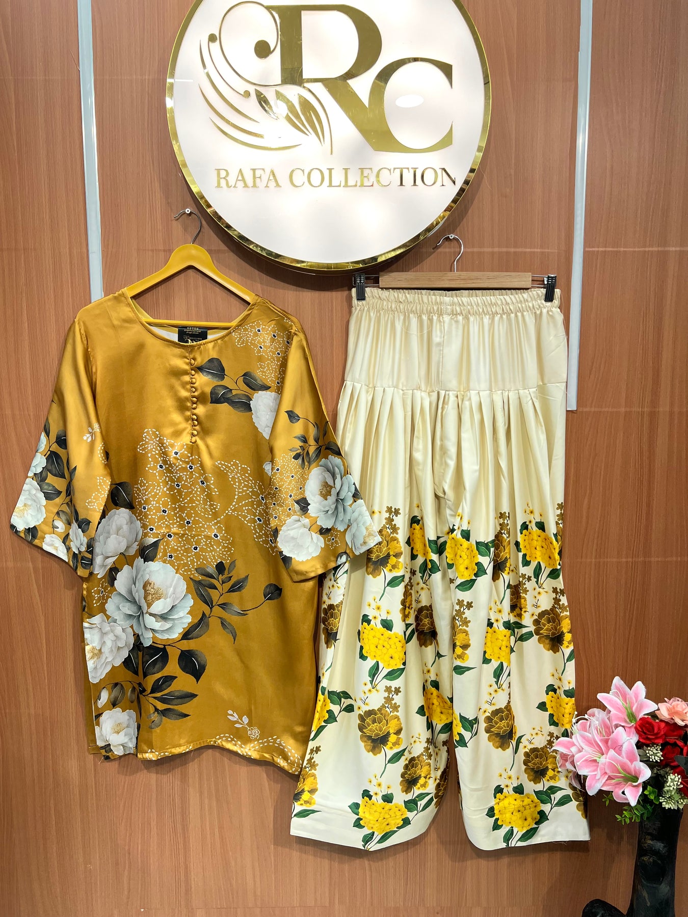 D no :- 2565 Expertly crafted with luxurious American satin, our Printed Farshi Suits feature stunning printed kurtis that exude elegance and sophistication. Step out in style with these high-quality suits that are sure to make a statement wherever you go. Elevate your wardrobe with these beautiful and unique pieces.