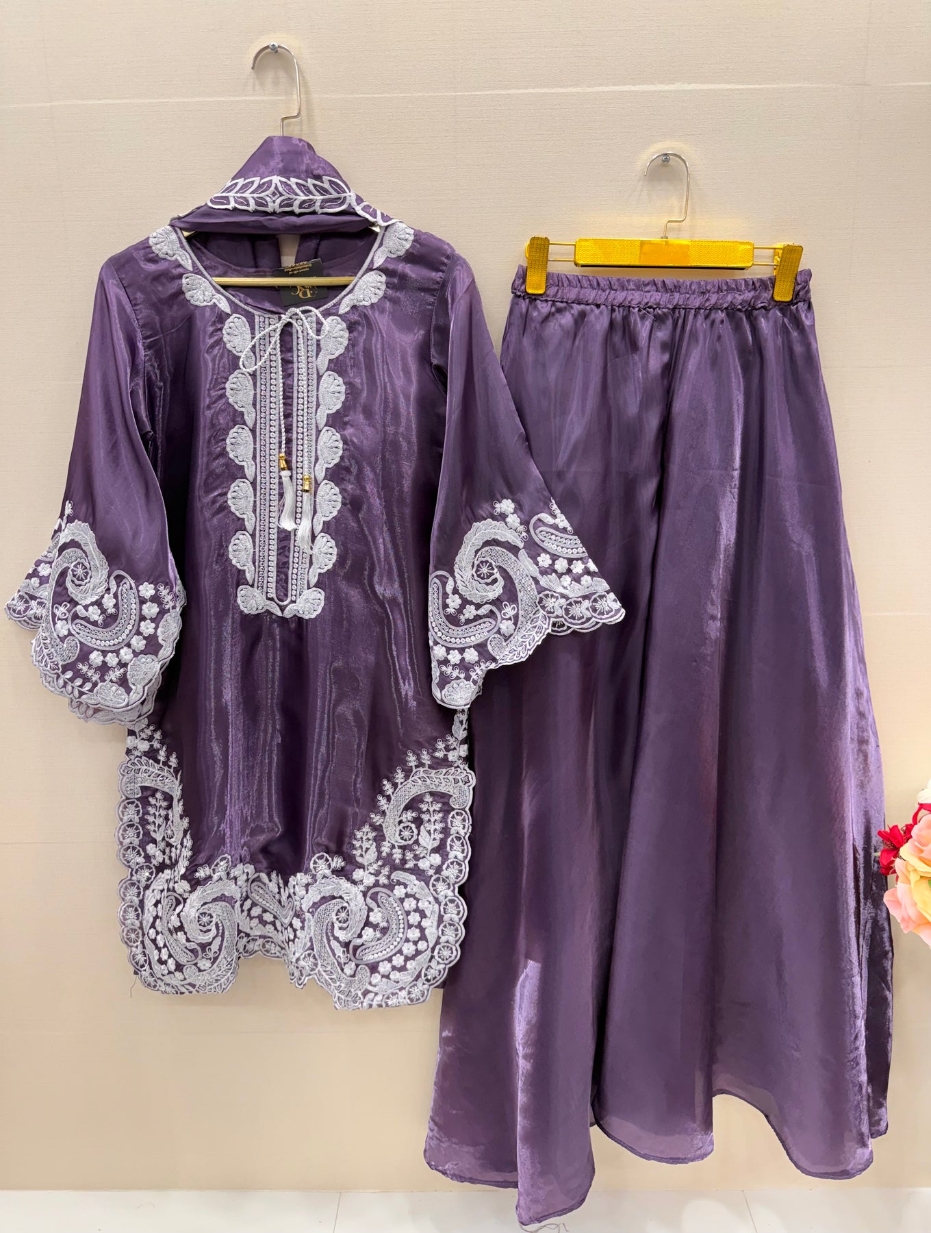 Top:-Shimmer Organza kurti with embroidery and pearl work