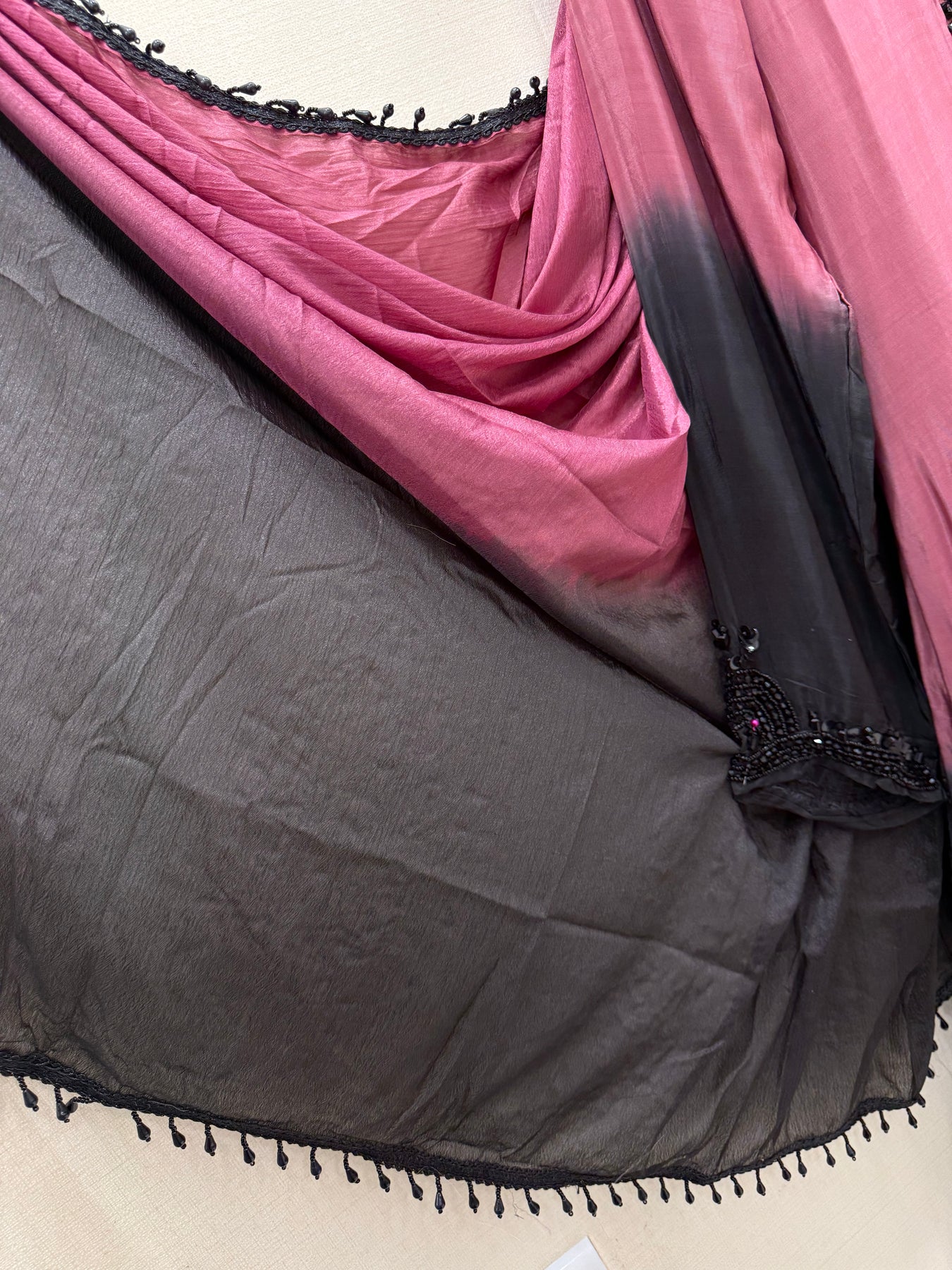 Top:-Satin Duel shade kurti with handwork and tassels