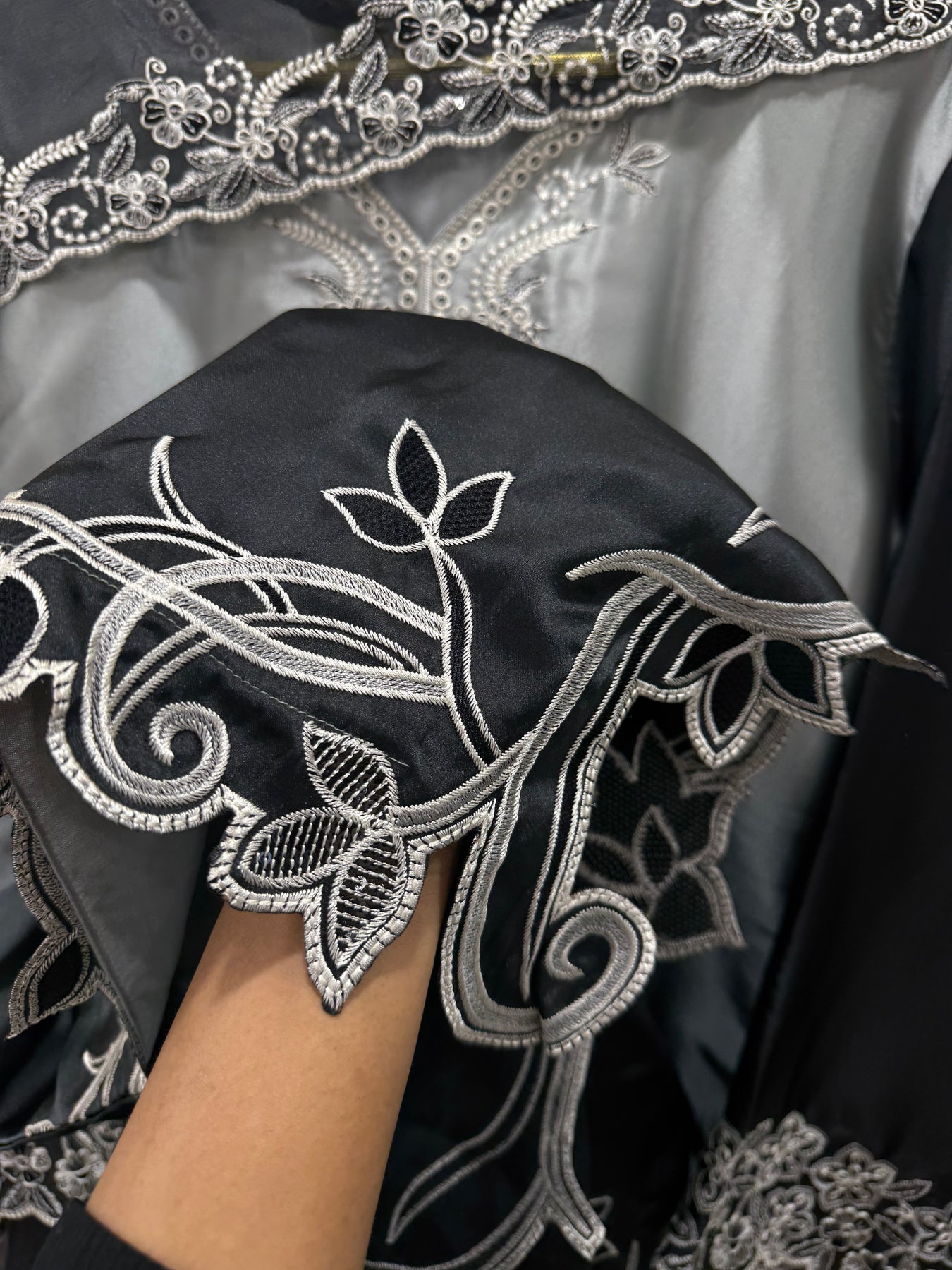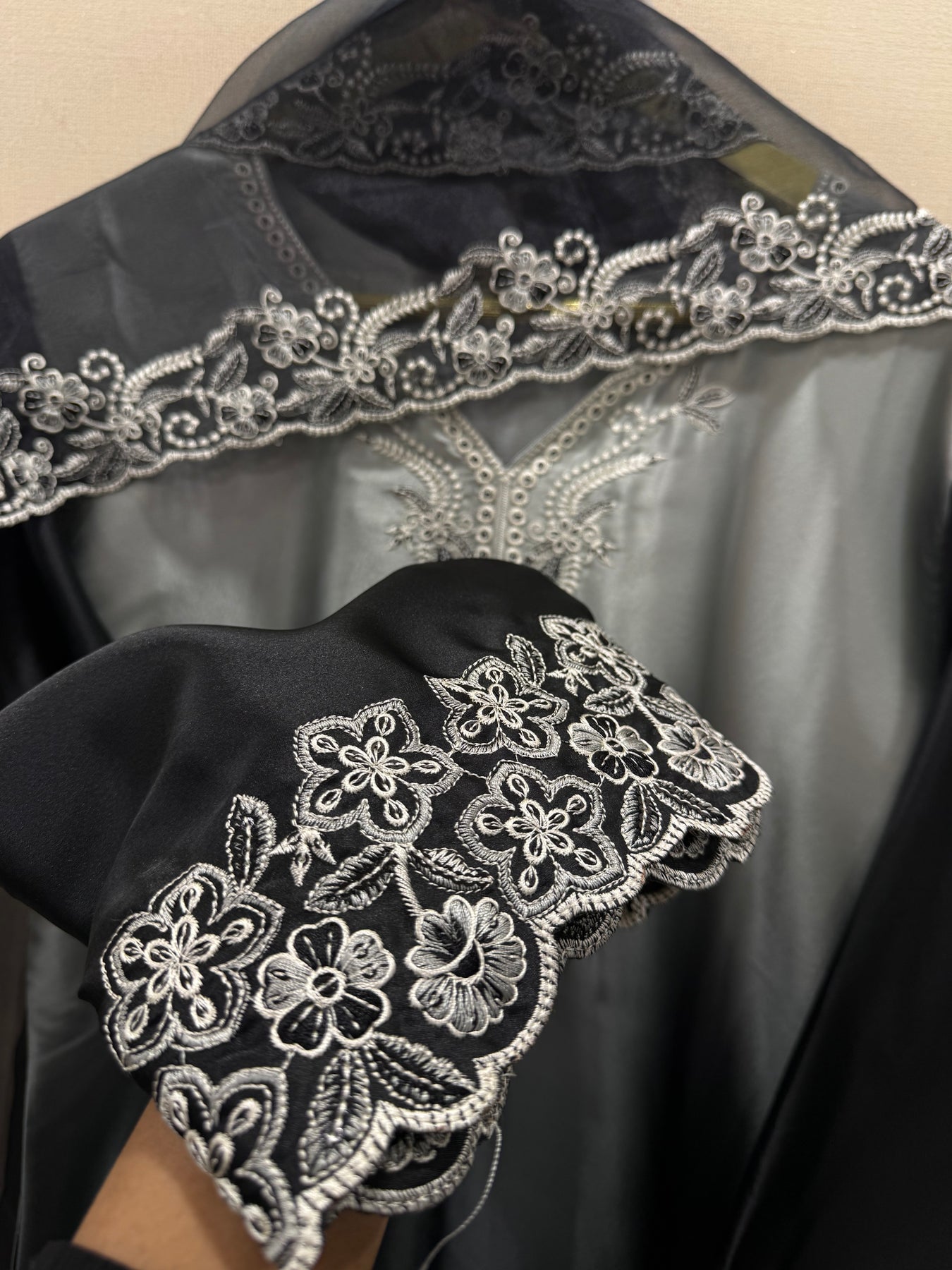 Bottom:-satin plazzo with embroidery sequence work