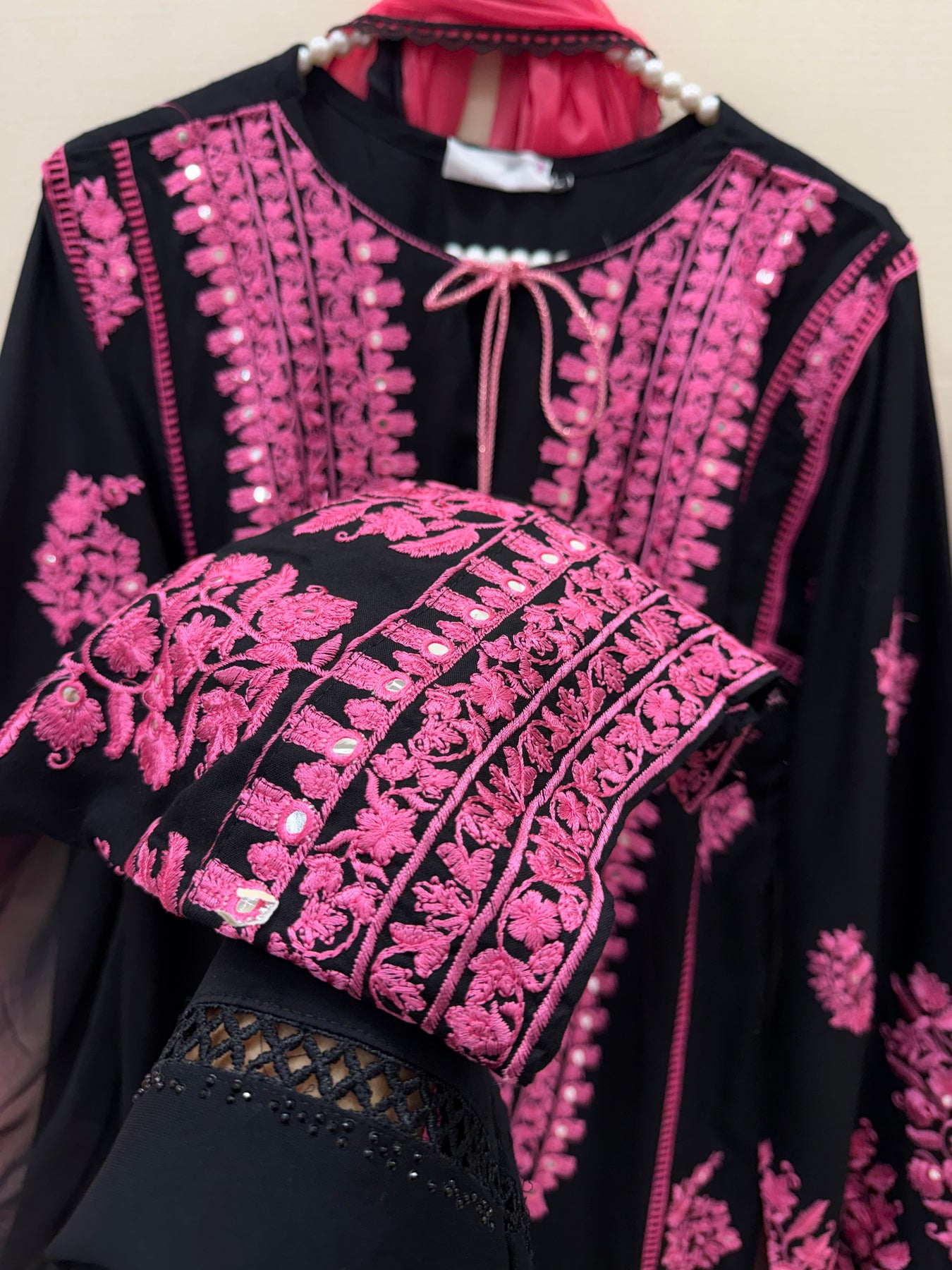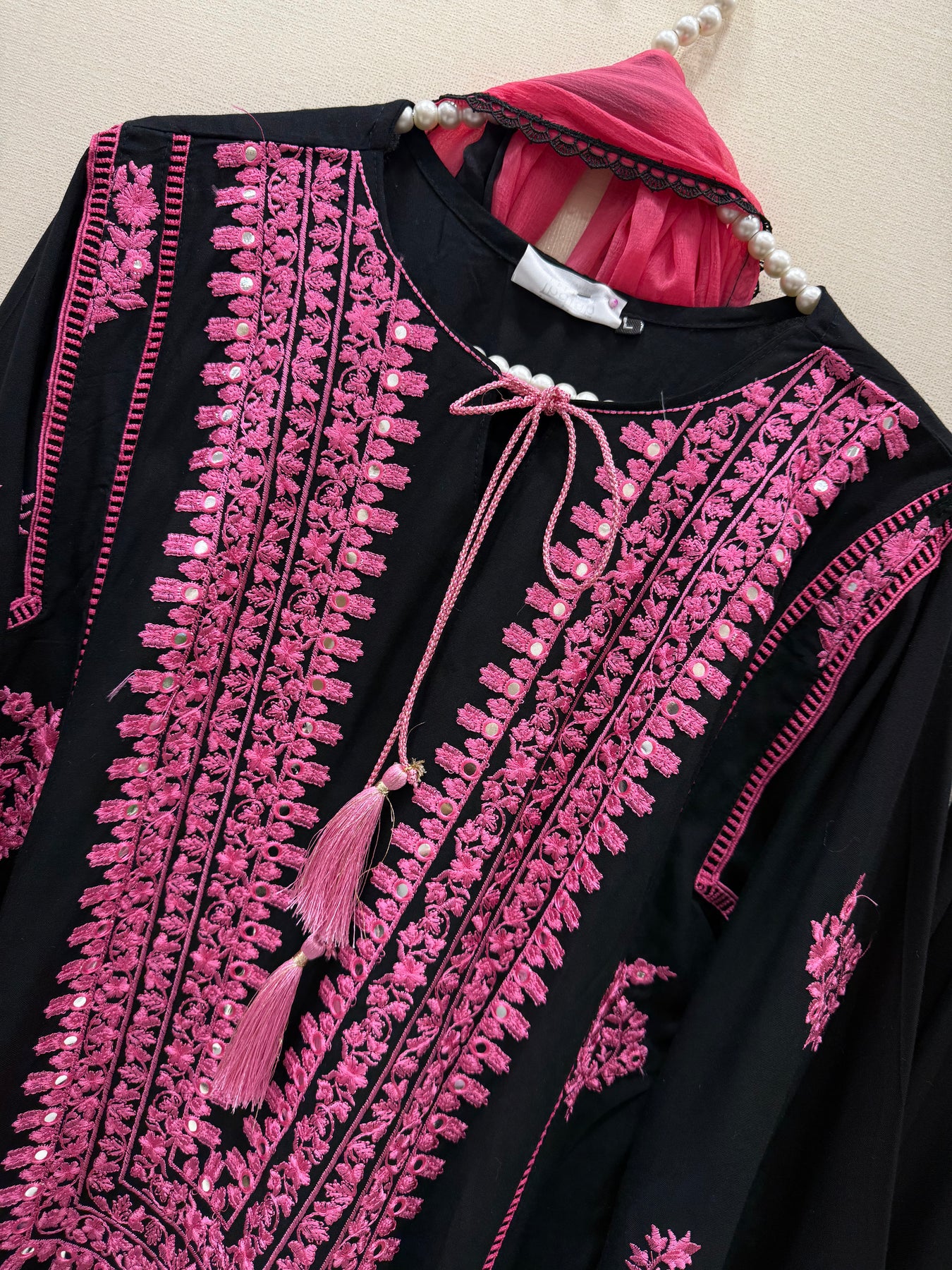 Top :- Heavy rayon fabric with embroidered work ( Bell sleeves)