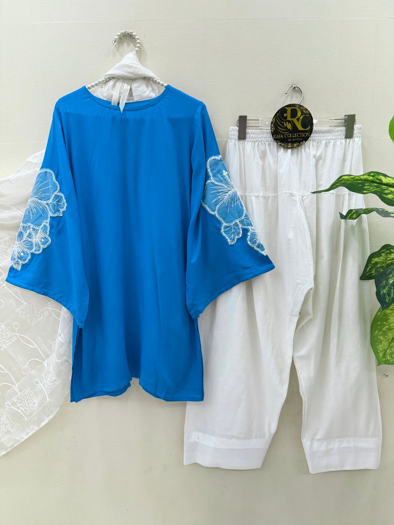 Top:-Heavy Rayon kurti with Handwork (bell sleeves)