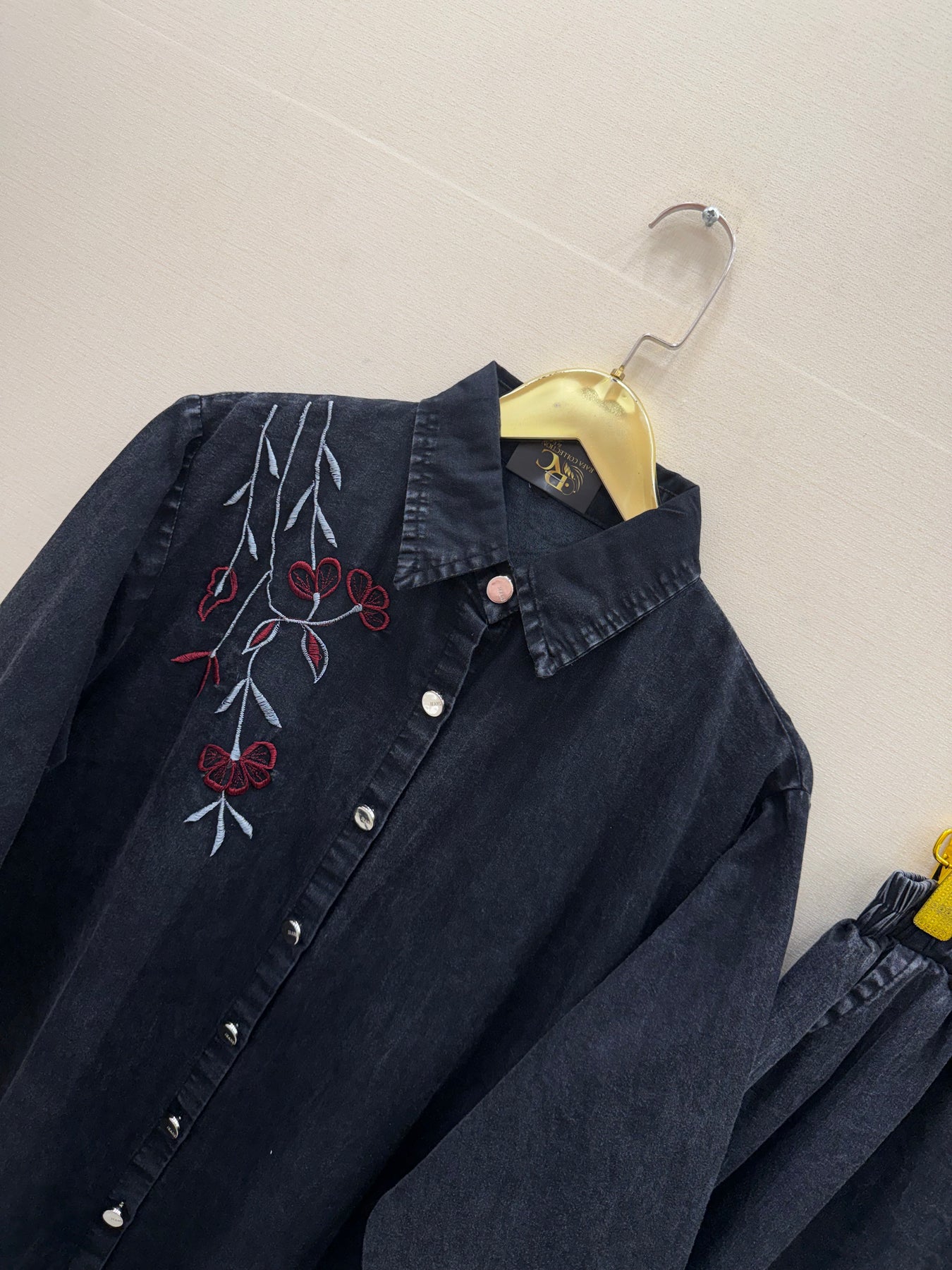 D No:-3189.Upgrade your wardrobe with our Denim co-ord sets. This set includes a stylish denim top with intricate embroidery work. Perfect for any occasion, elevate your look with this trendy and versatile piece. Made with high-quality denim, this set offers both comfort and style.
