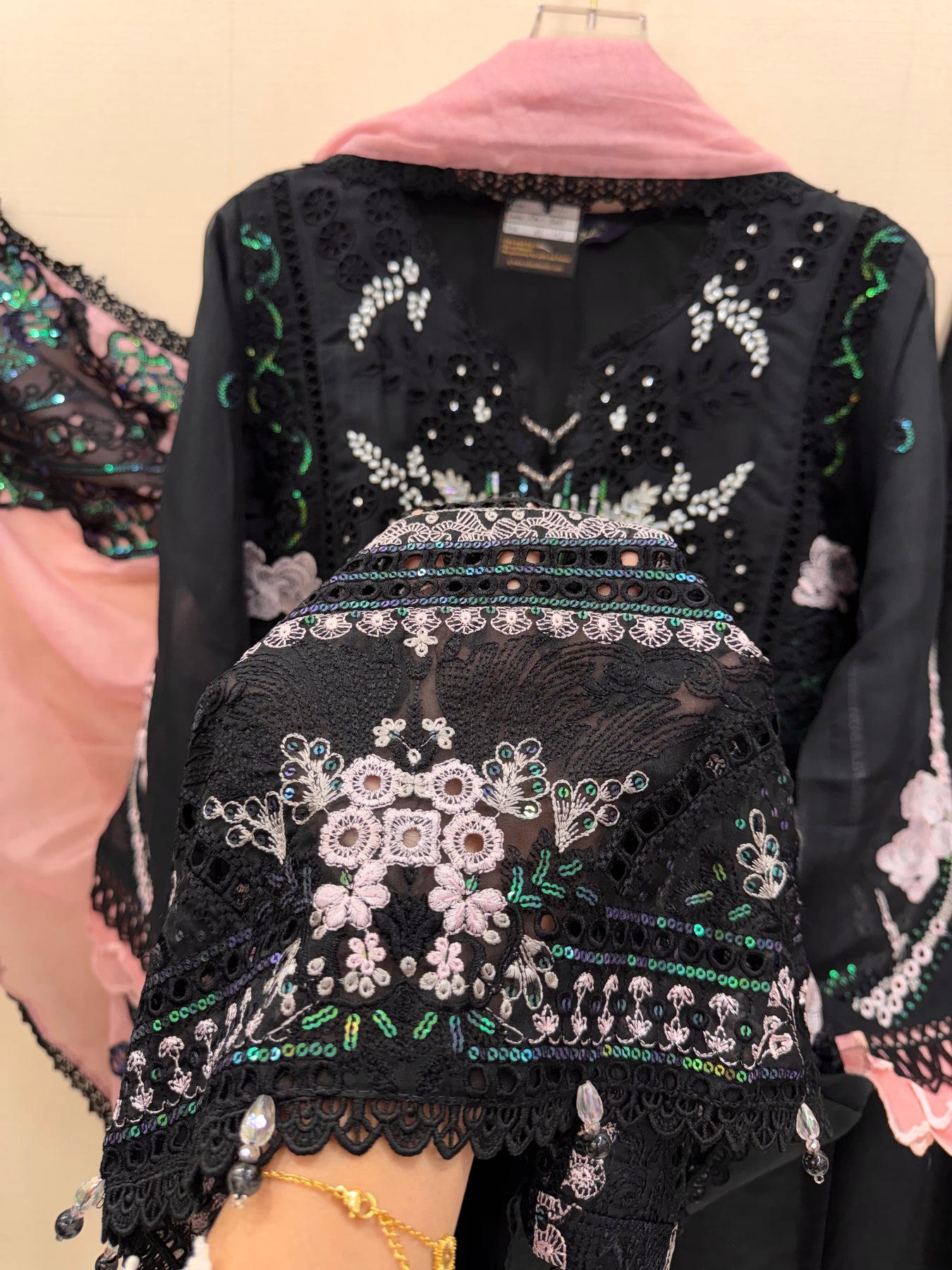 D No:-5003.The cotton silk kurti features intricate embroidery with pearl handwork and detailed cut work. This blend of materials ensures breathability and comfort, while the craftsmanship enhances its aesthetic appeal. Ideal for formal and casual occasions, this kurti adds sophistication and elegance to any wardrobe.