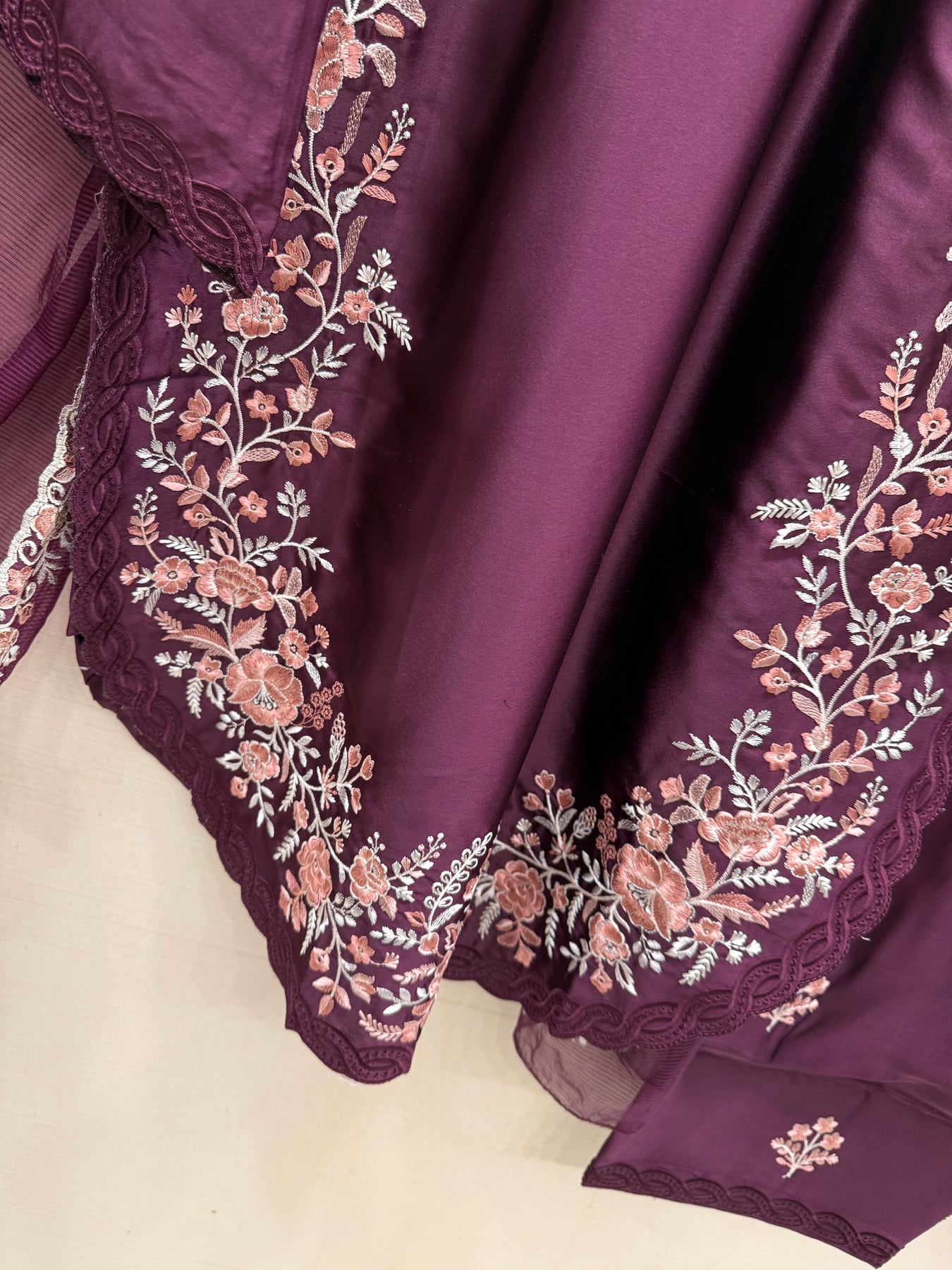 Top:-Satin fabric kurti with embroidery work ( bell sleeves )