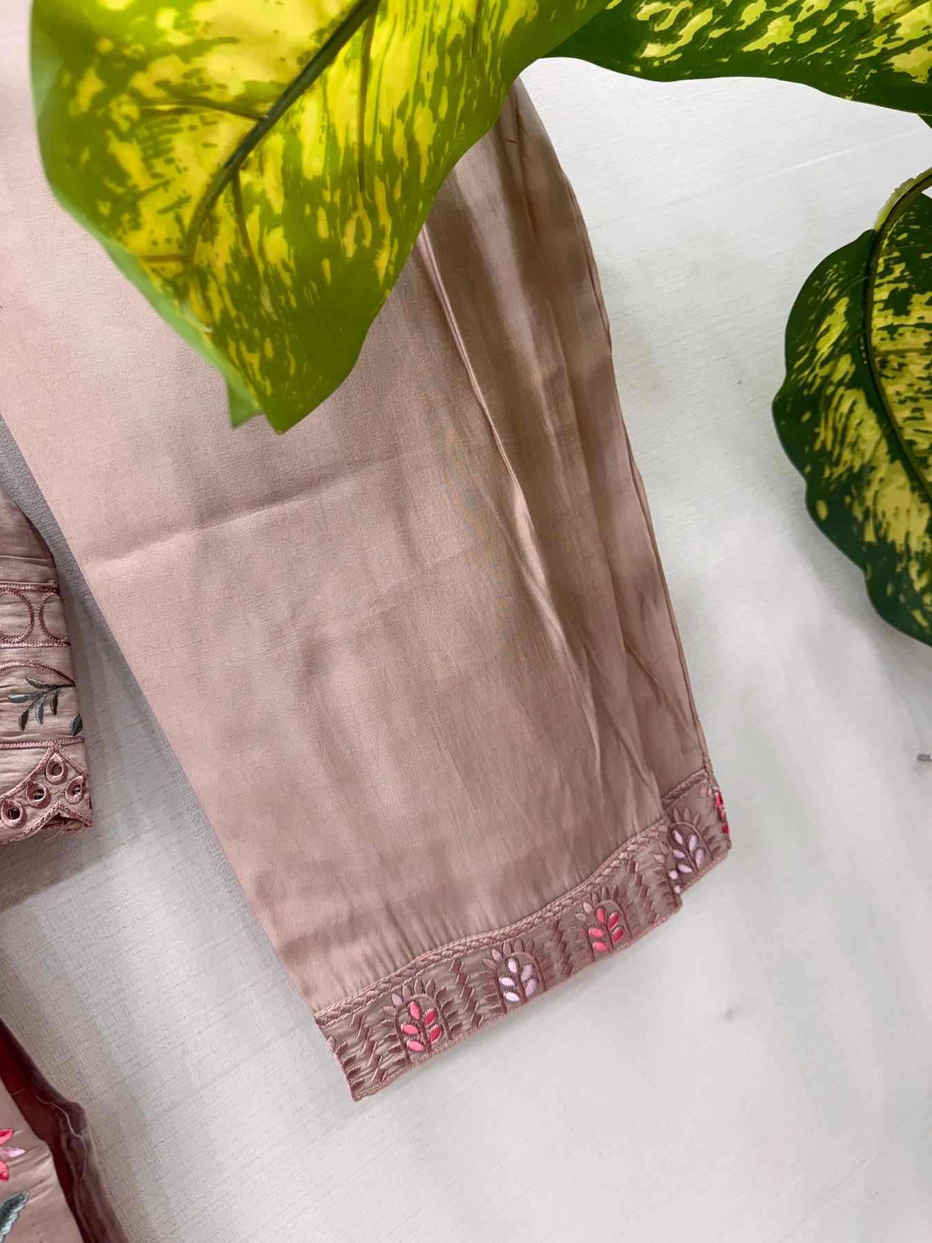 D No:-0607.The Cotton Co-ord Sets features a cotton silk kurti adorned with intricate embroidery work. This combination of materials ensures breathability and comfort while providing a refined aesthetic. The embroidery enhances visual appeal, making it suitable for various occasions, and its durable fabric ensures longevity with proper care.