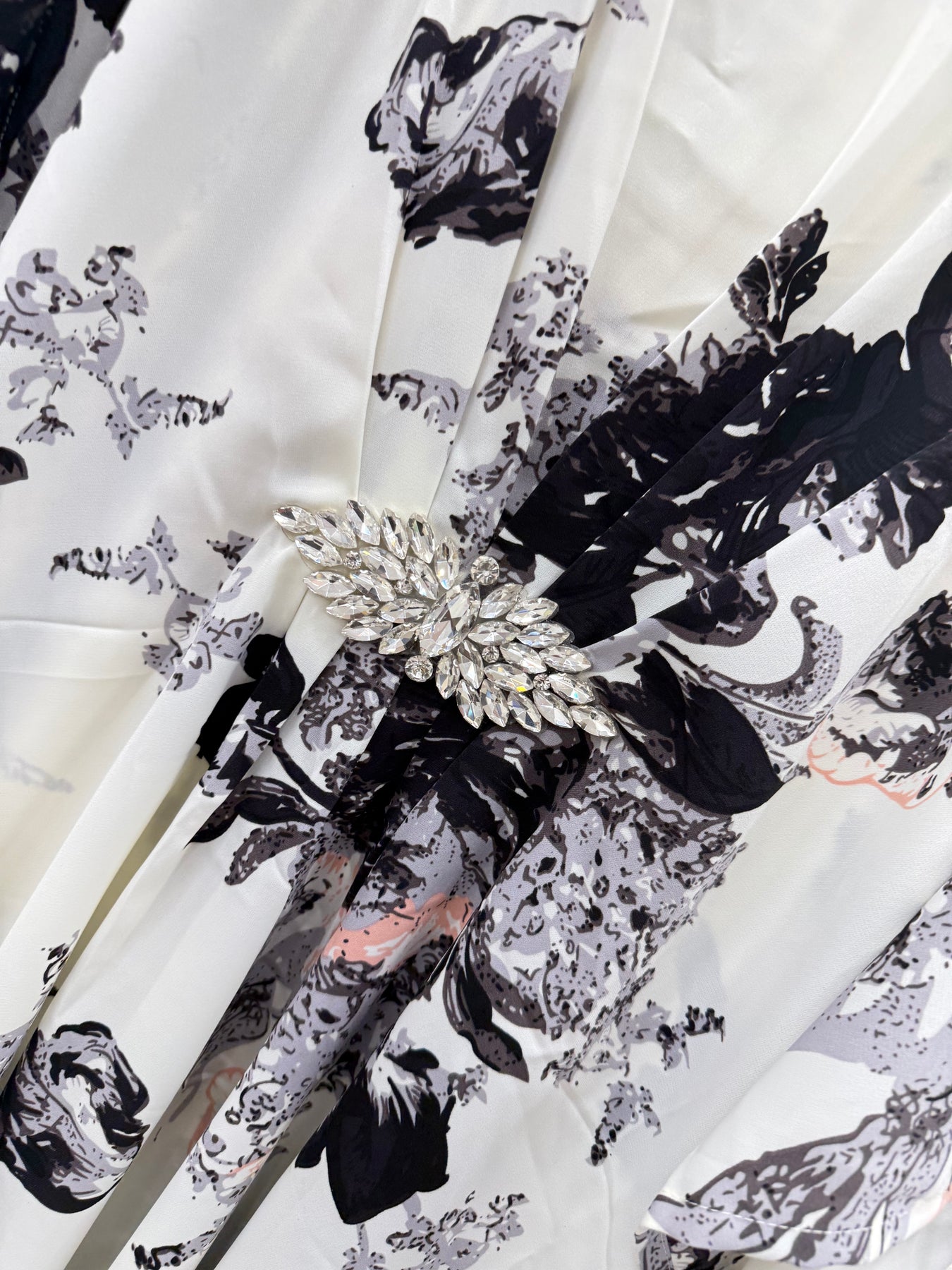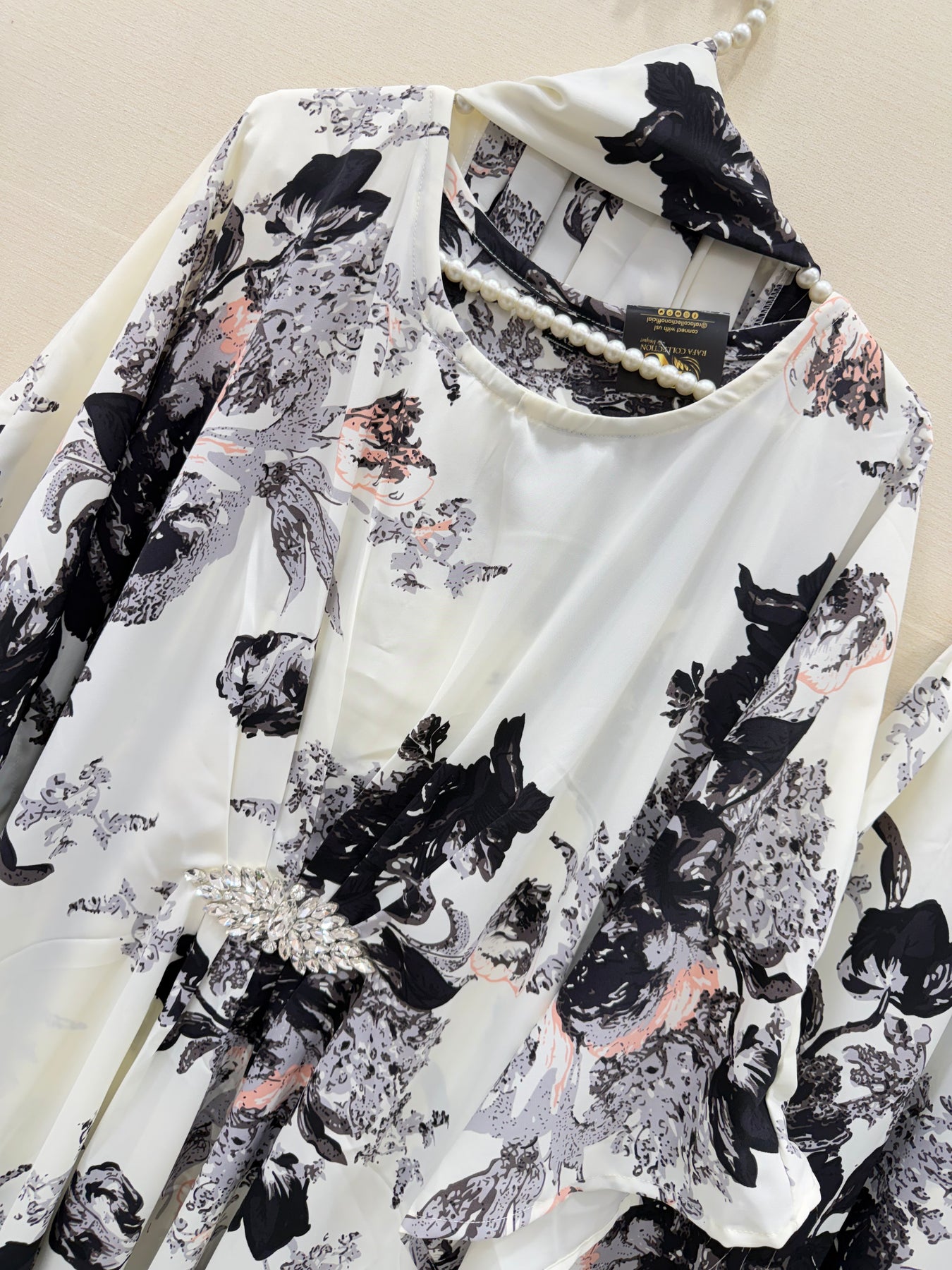 Top:- Imported satin printed kaftan top with Brooch