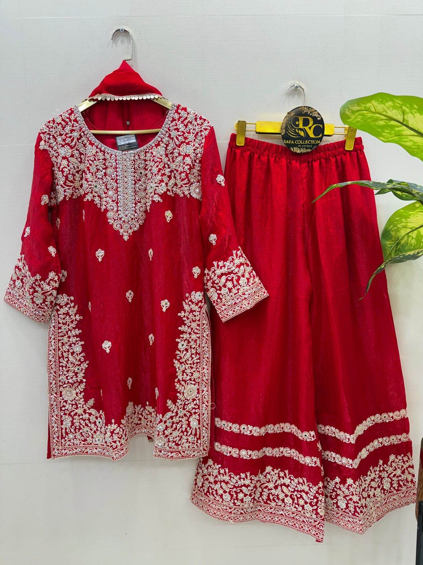 Bottom:-Shimmer Organza plazzo with thread work
