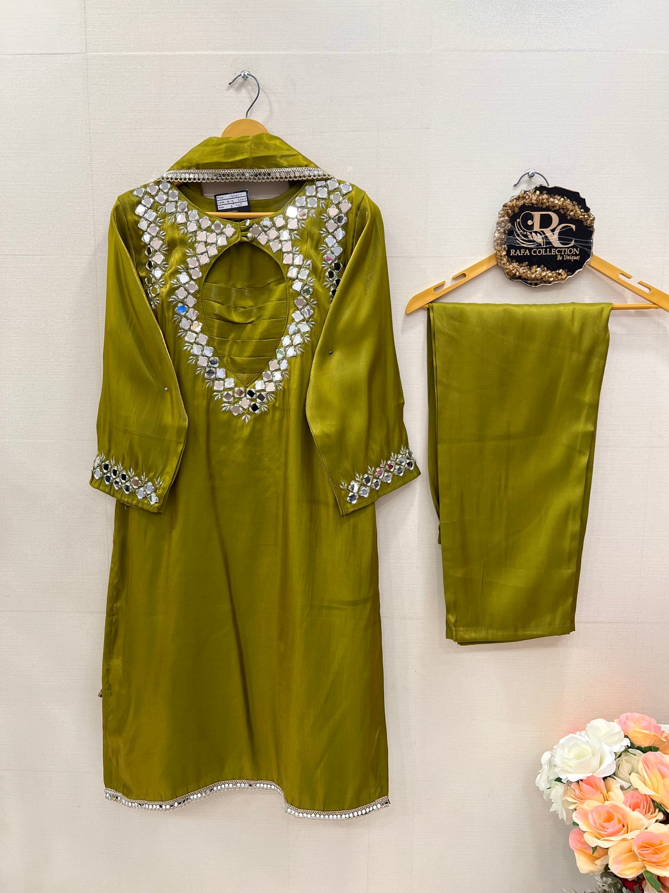 Top:-Shimmer satin kurti with mirror work