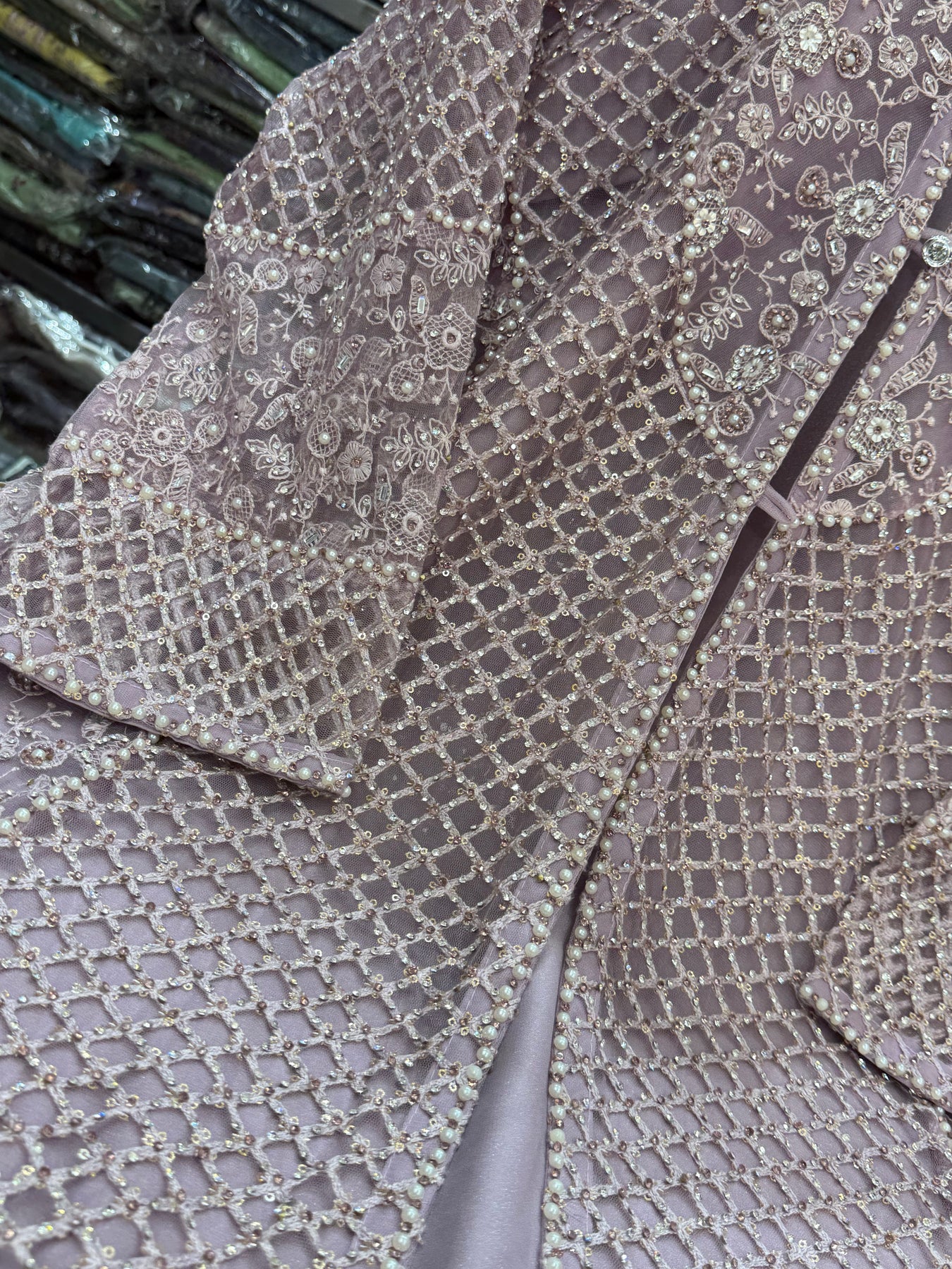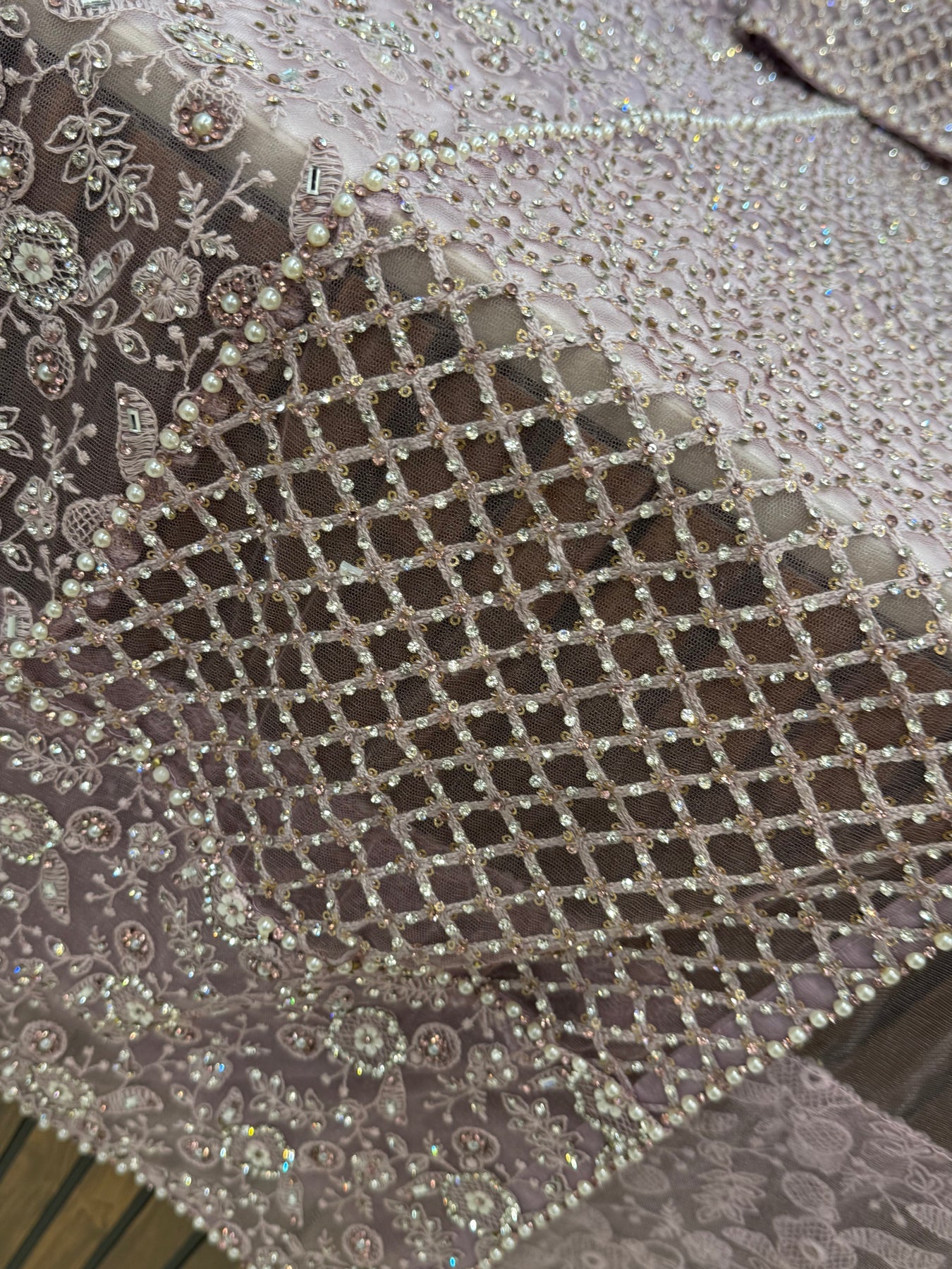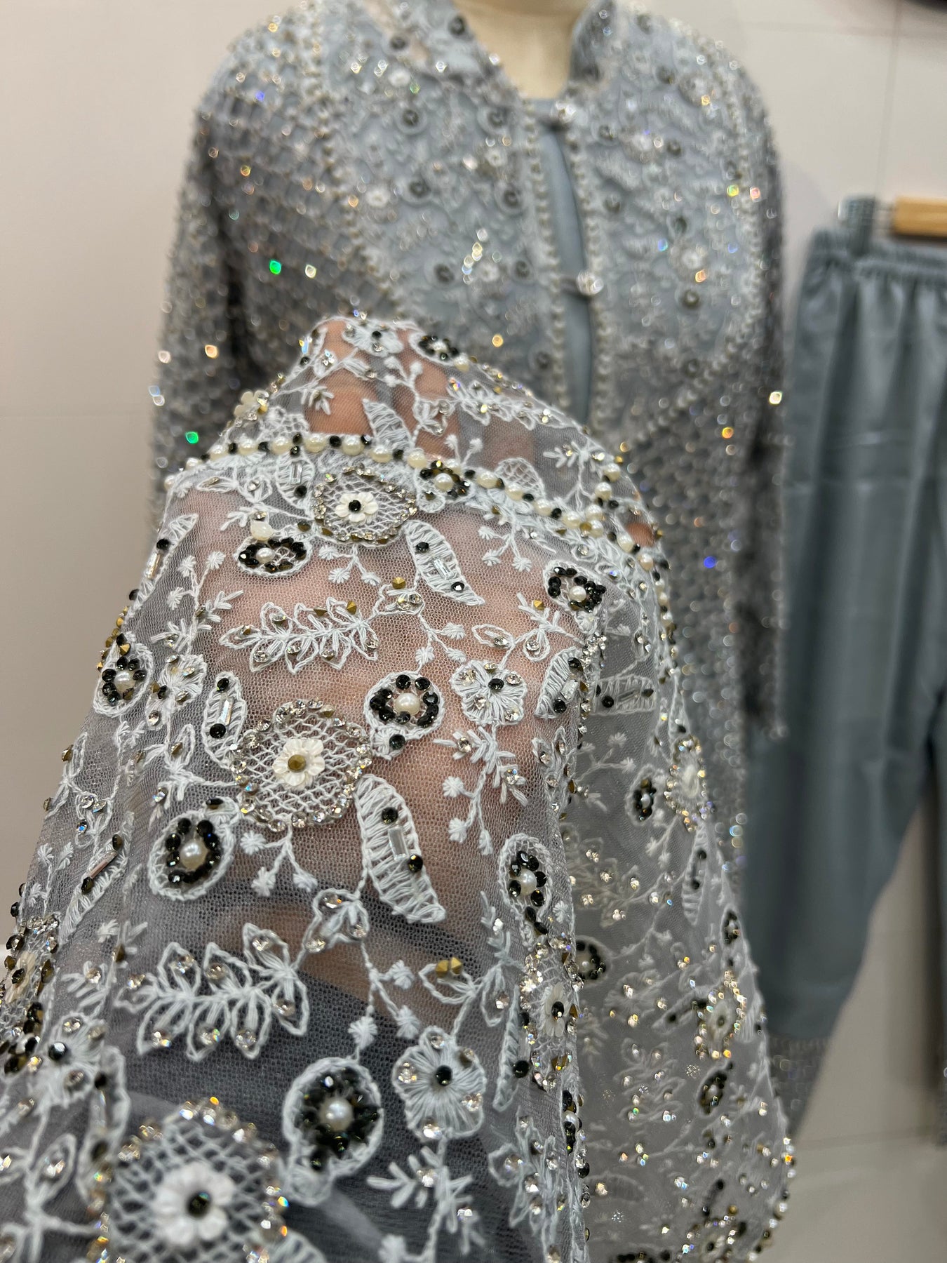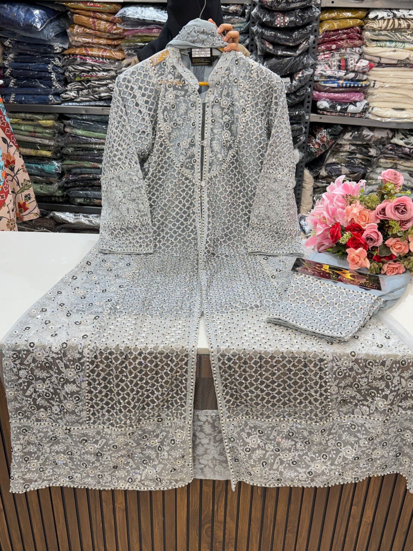 top - net with heavy handwork embroidery front and back sideΒ