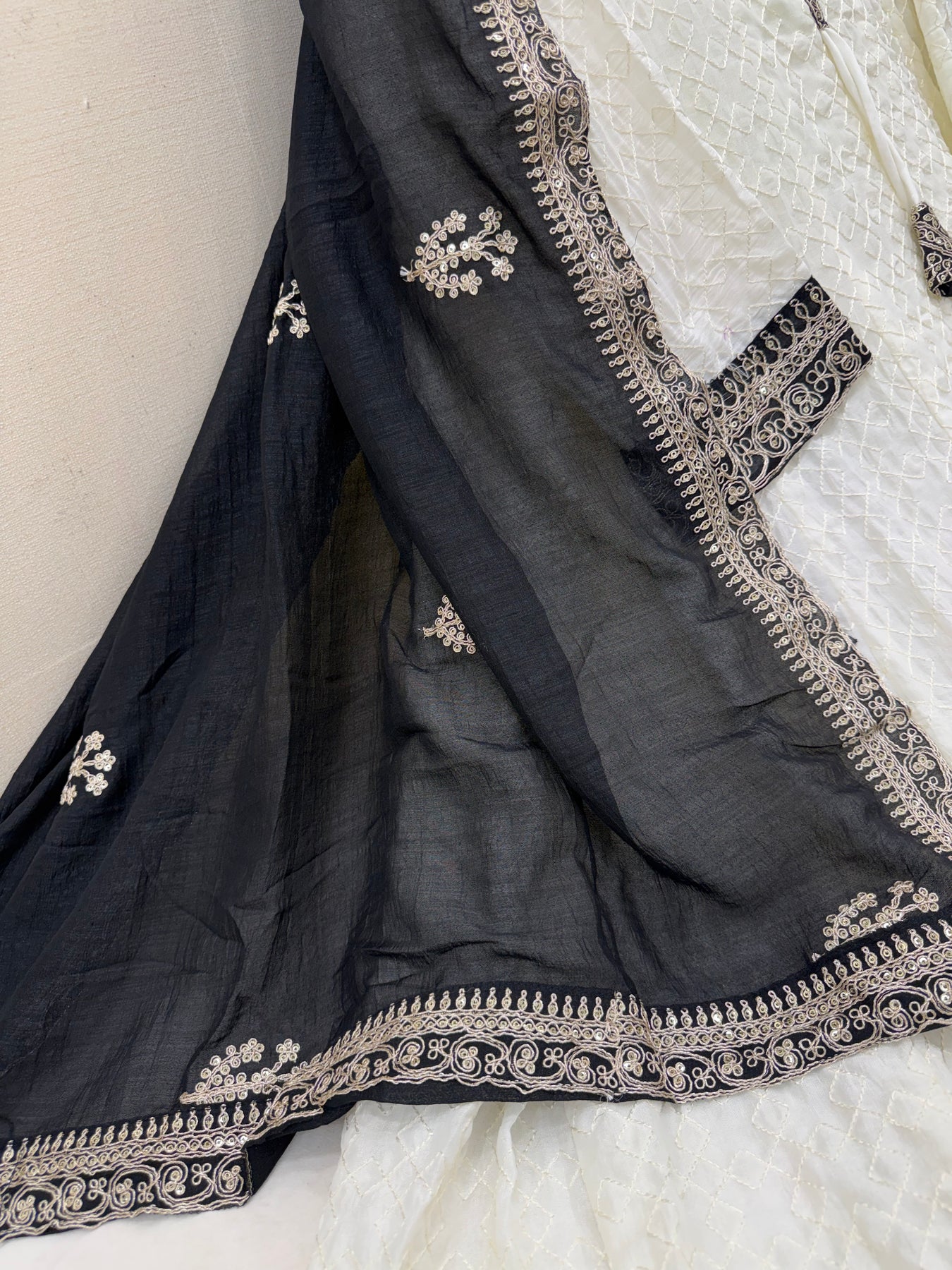 Dupatta:-Chinon dupatta with thread and sequence work