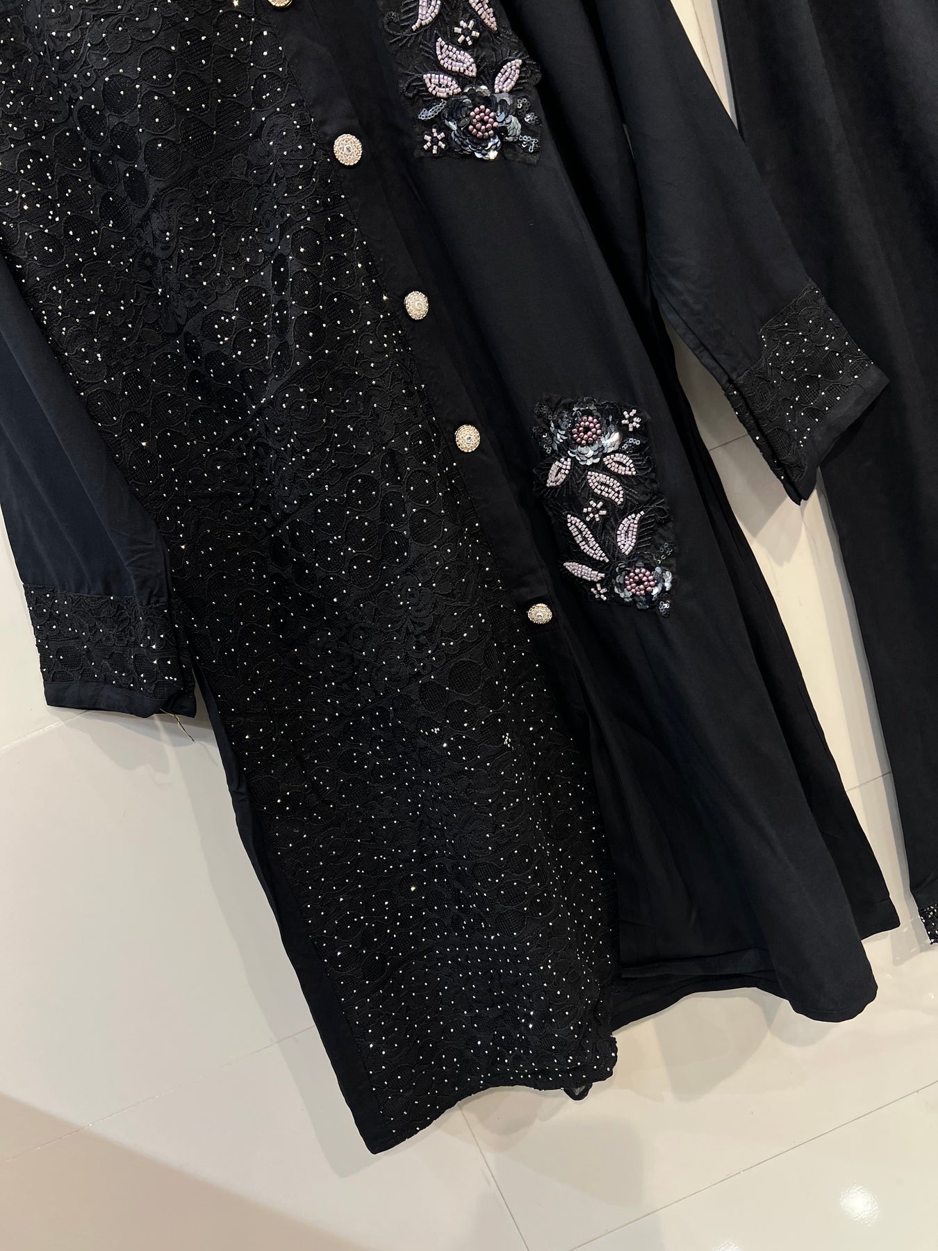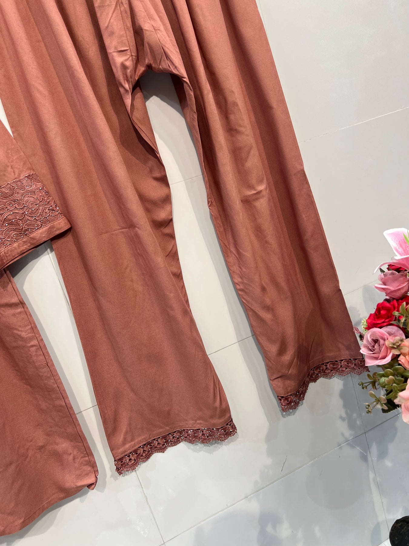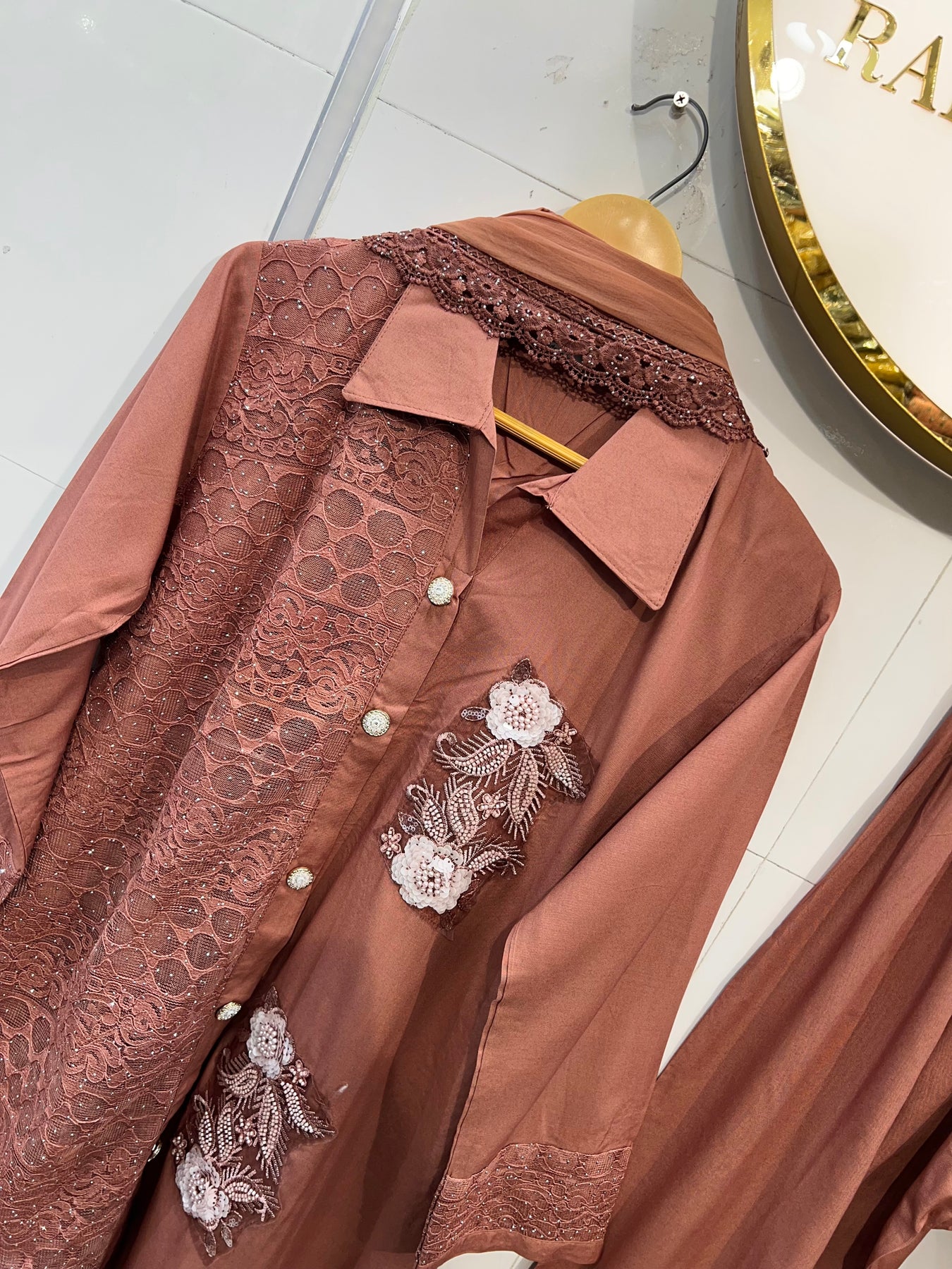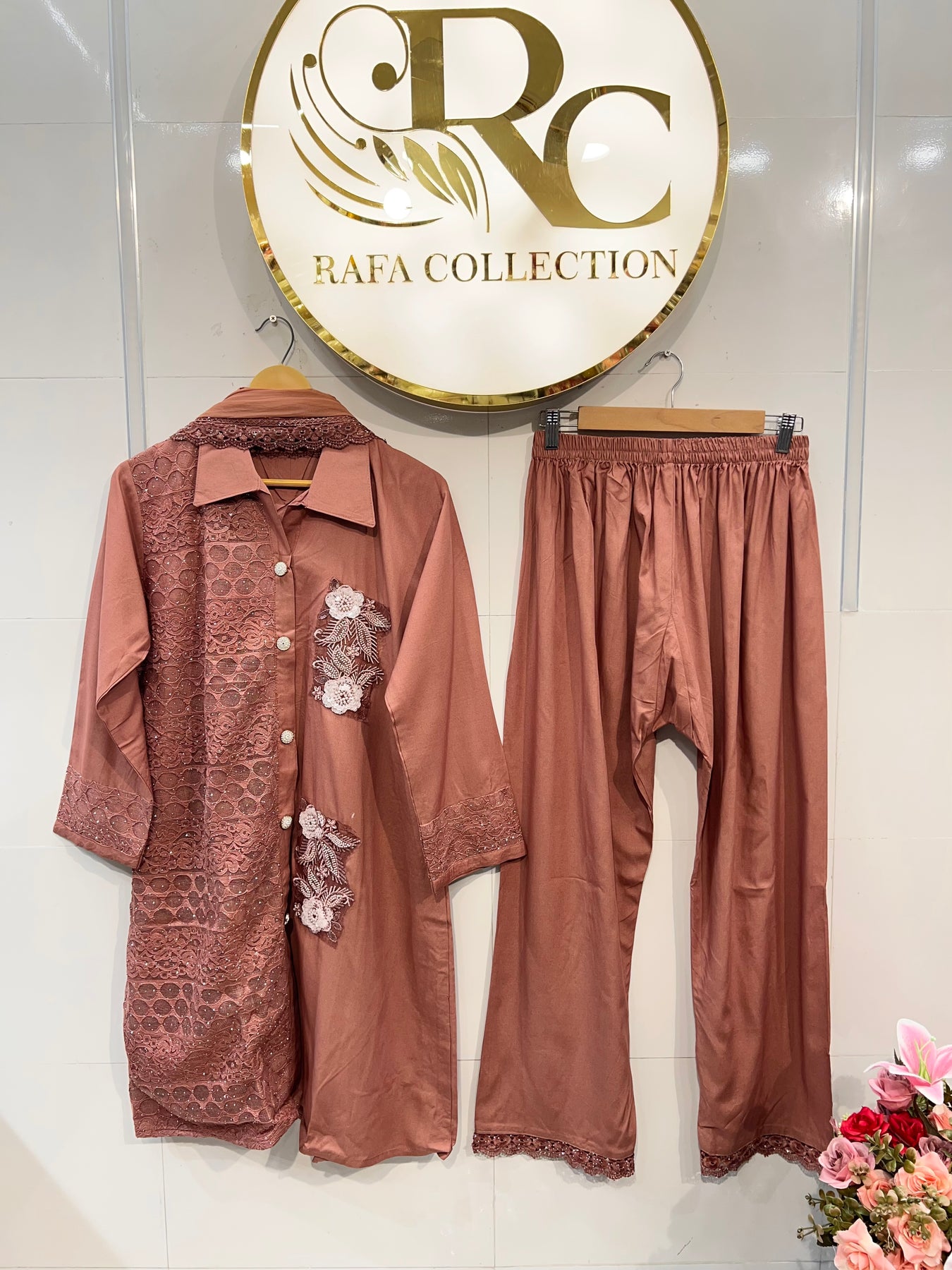 D no :-.  2554 This Co-ord set, style number, features delicate craftsmanship with rayon crochet and lace work. Made from high-quality materials, this set offers both comfort and durability. Add elegance to your wardrobe with this timeless piece.
