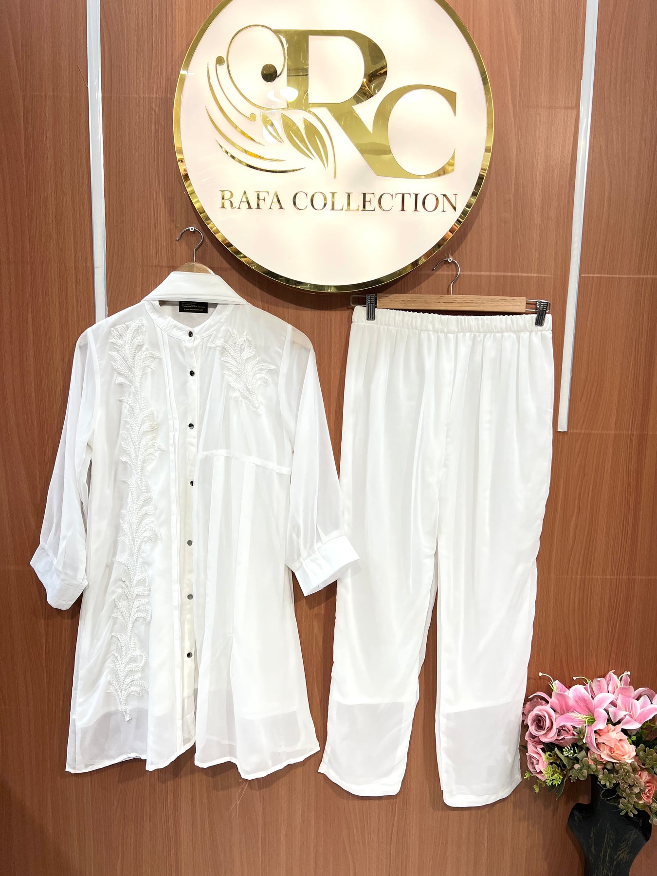 D no :-1655 Enhance your wardrobe with our Co-ord sets! Featuring a georgette handwork patchwork top, this set adds a touch of elegance to any outfit. Made with high-quality fabric, it offers comfort and style for any occasion. Elevate your fashion game with this stylish and versatile set.