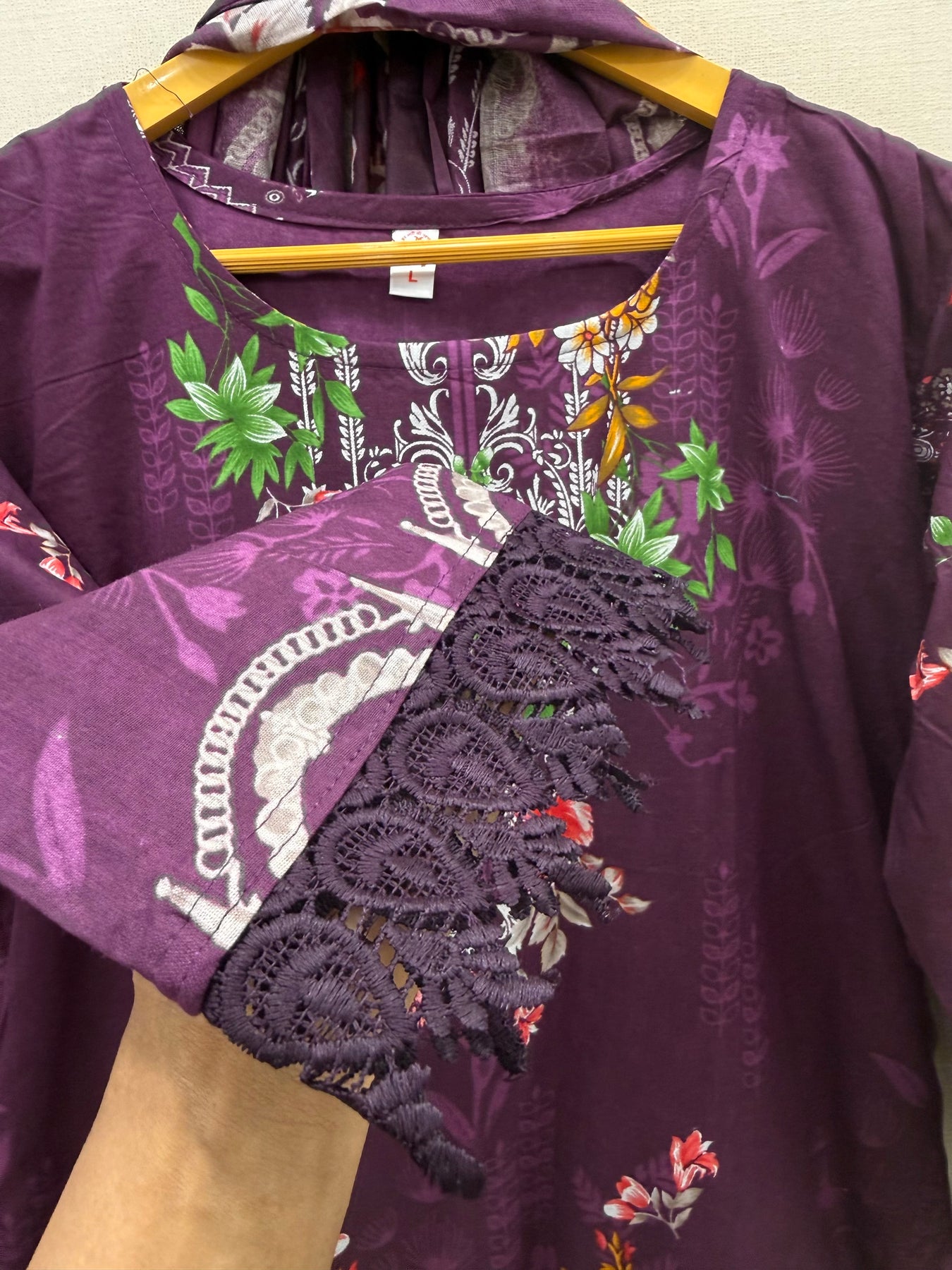 Top:-cotton printed kurti with lace work