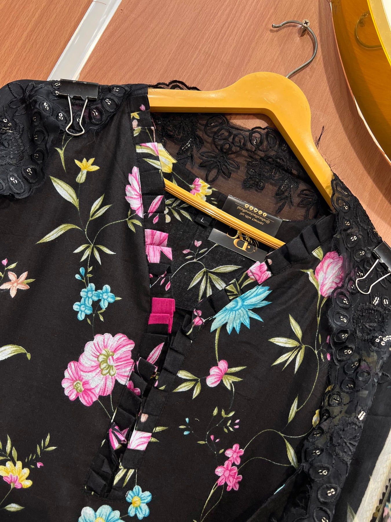 D no :- 2558 This Pakistani formals  features a cotton printed top with delicate embroidery and trendy tassels. With a perfect blend of traditional and modern elements, this outfit is perfect for any formal occasion. Stay comfortable and stylish with this unique piece.