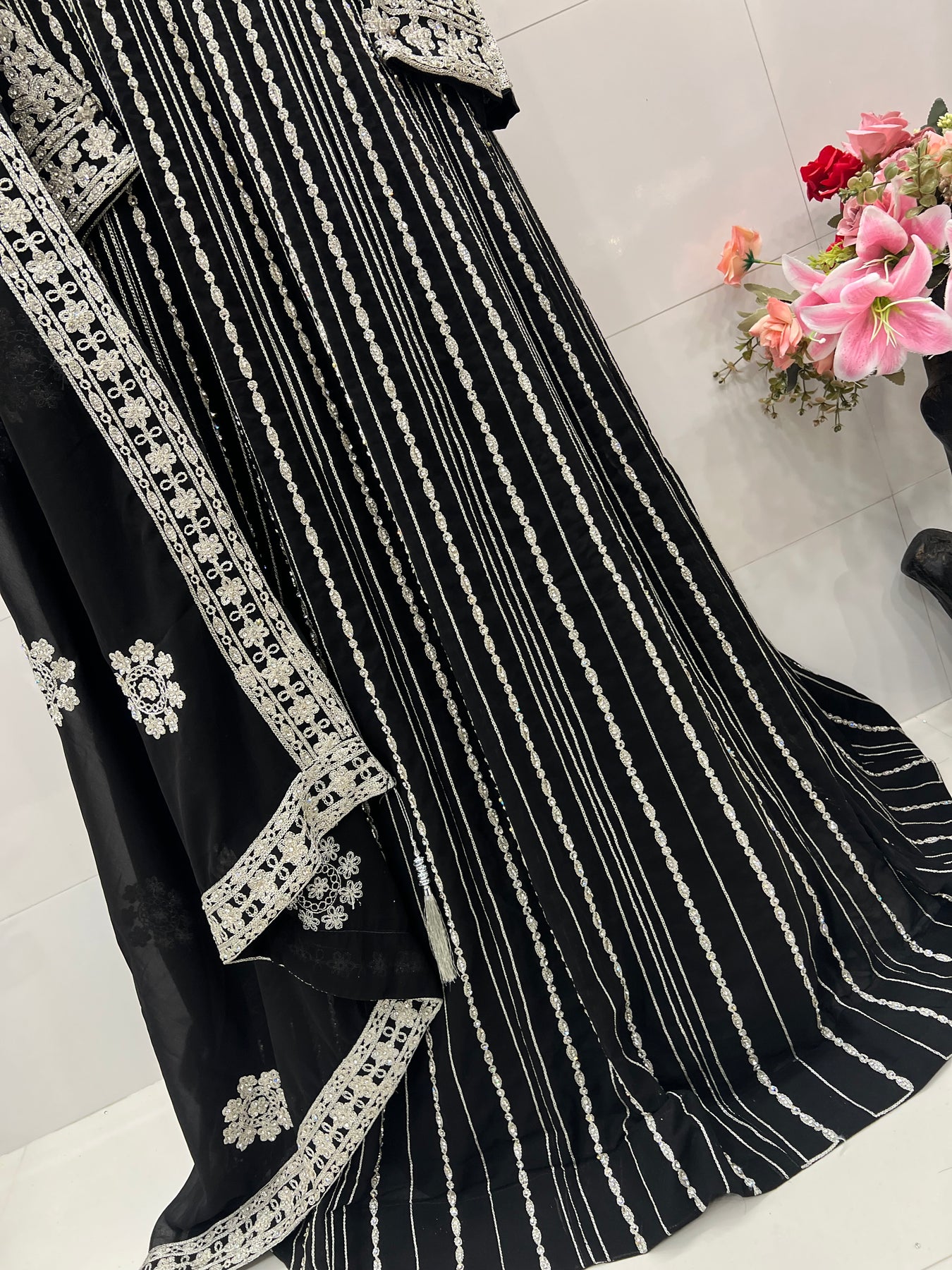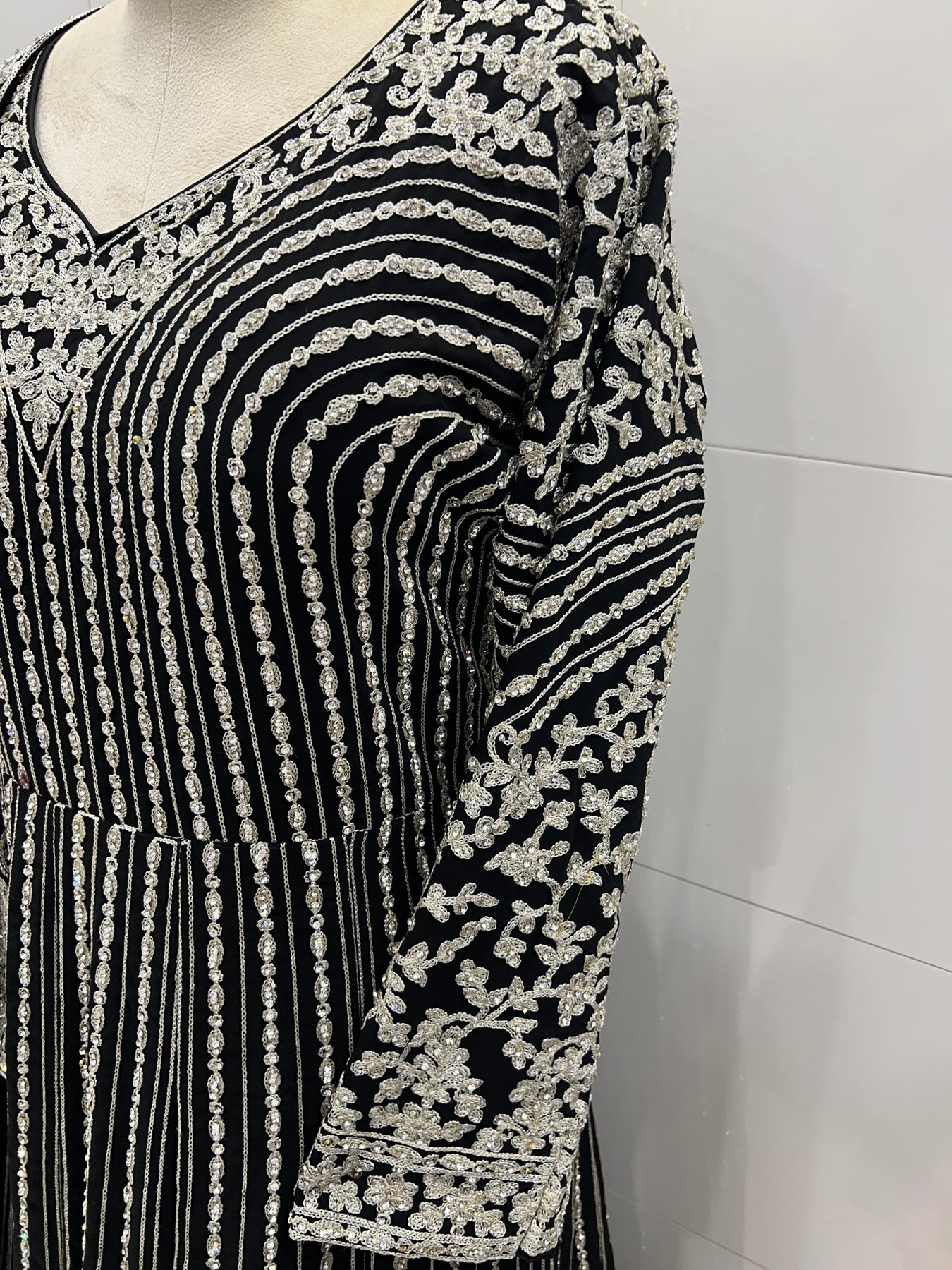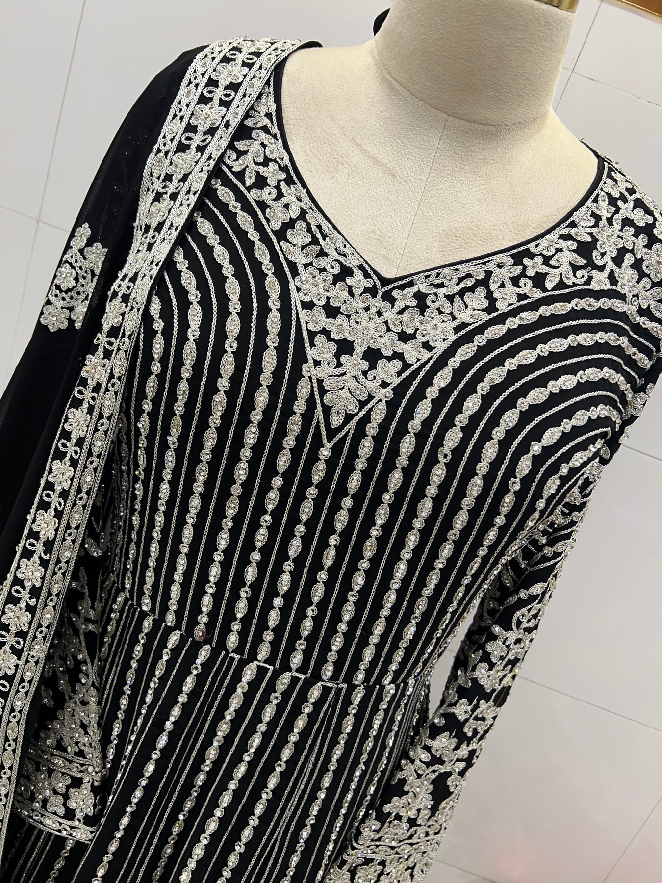 Top :- heavy georgette gown with embroidery and stone work ( shanton inner ) with heavy can can inside to give it perfect look