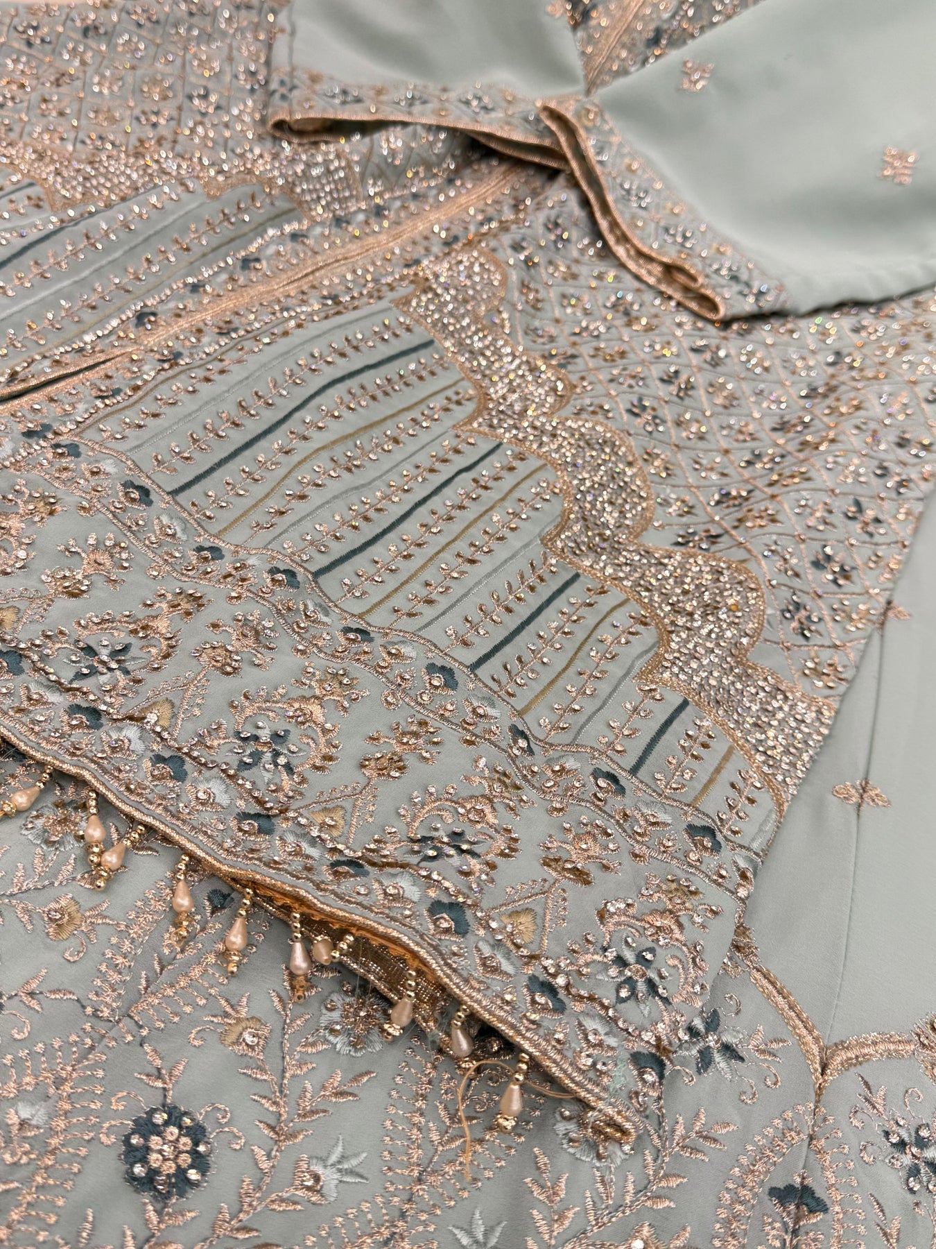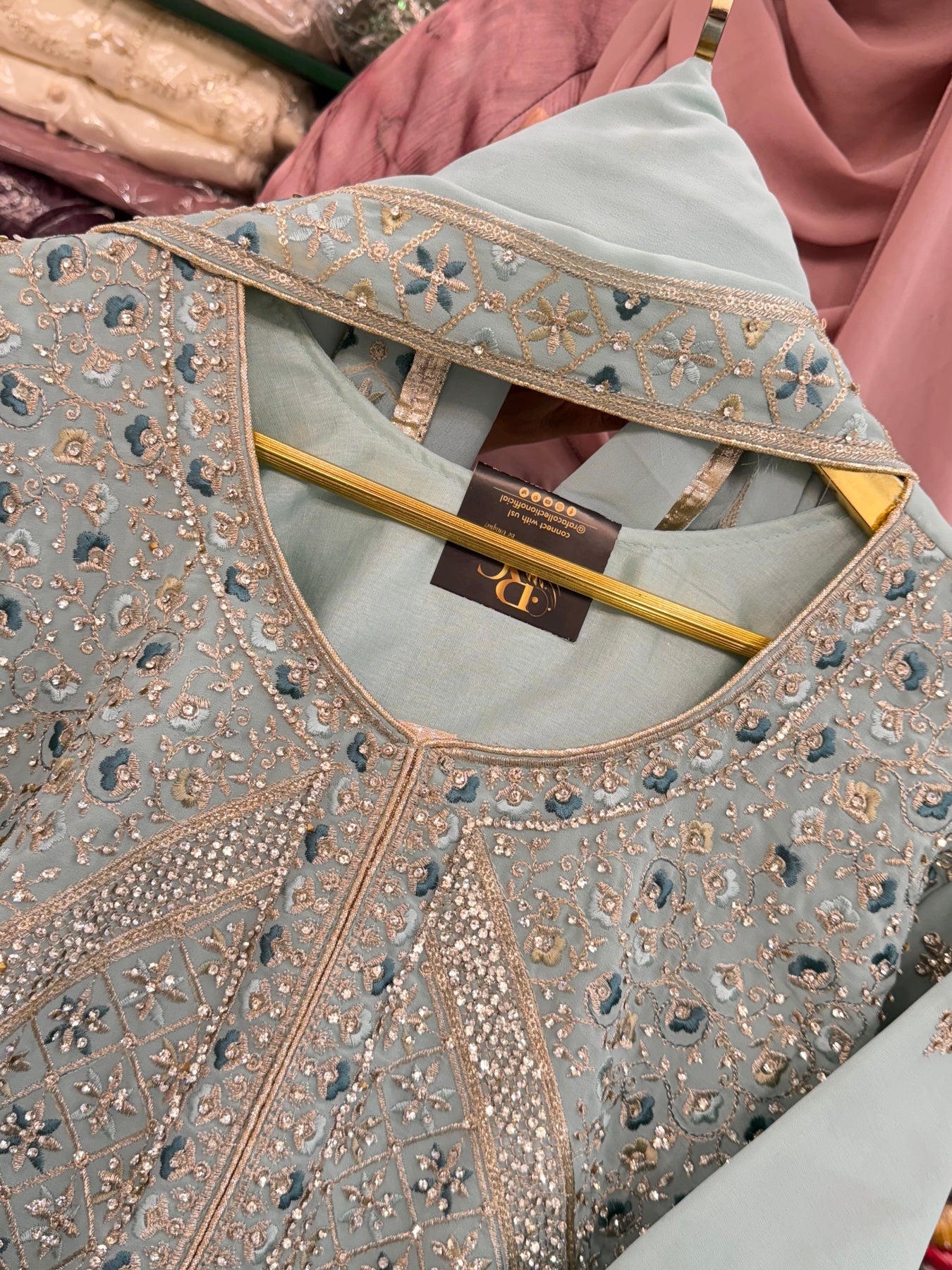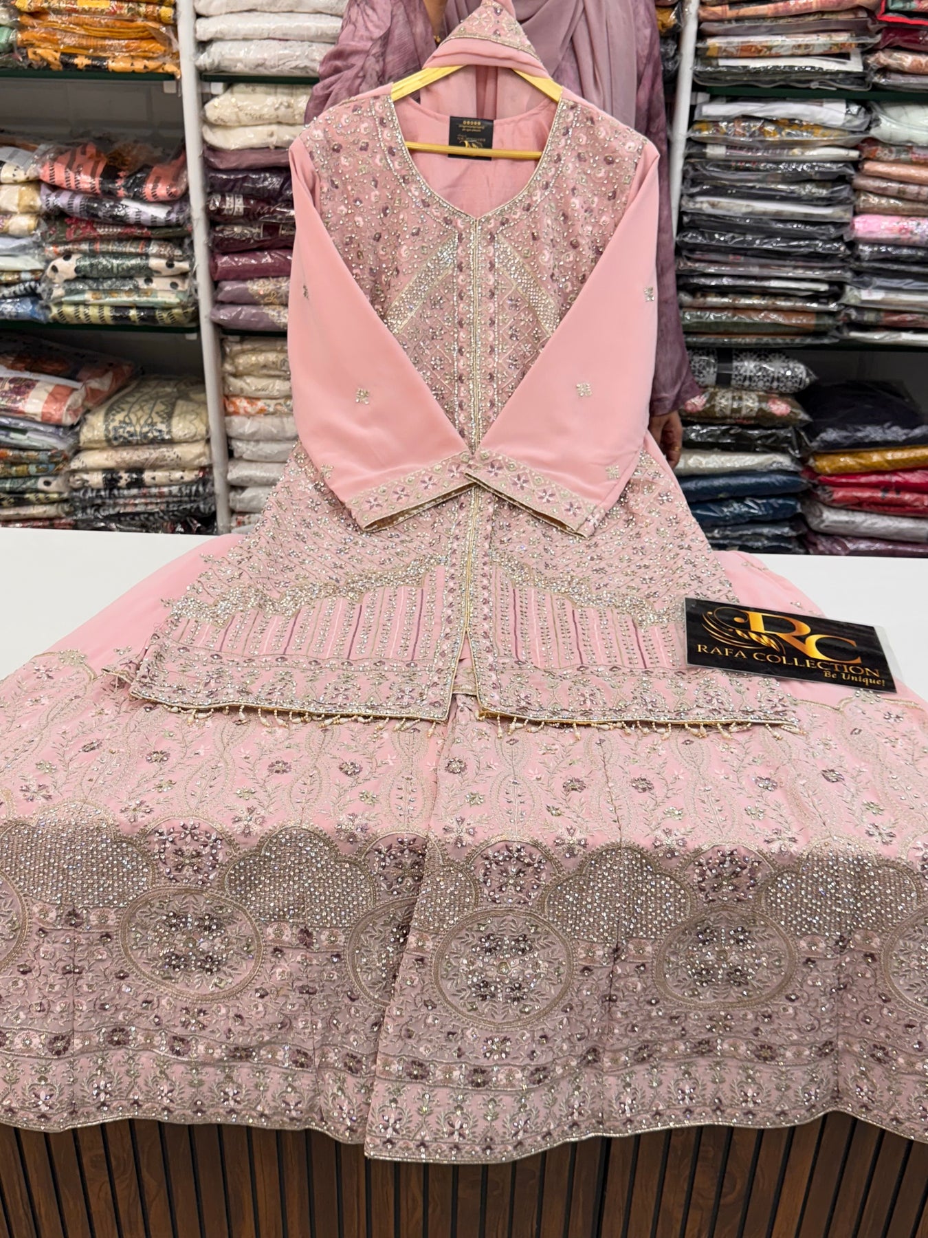 Bottom:- Georgette kalidar  palazzos with embroidery and zarkan work  ( shantoon inner )front back both side work