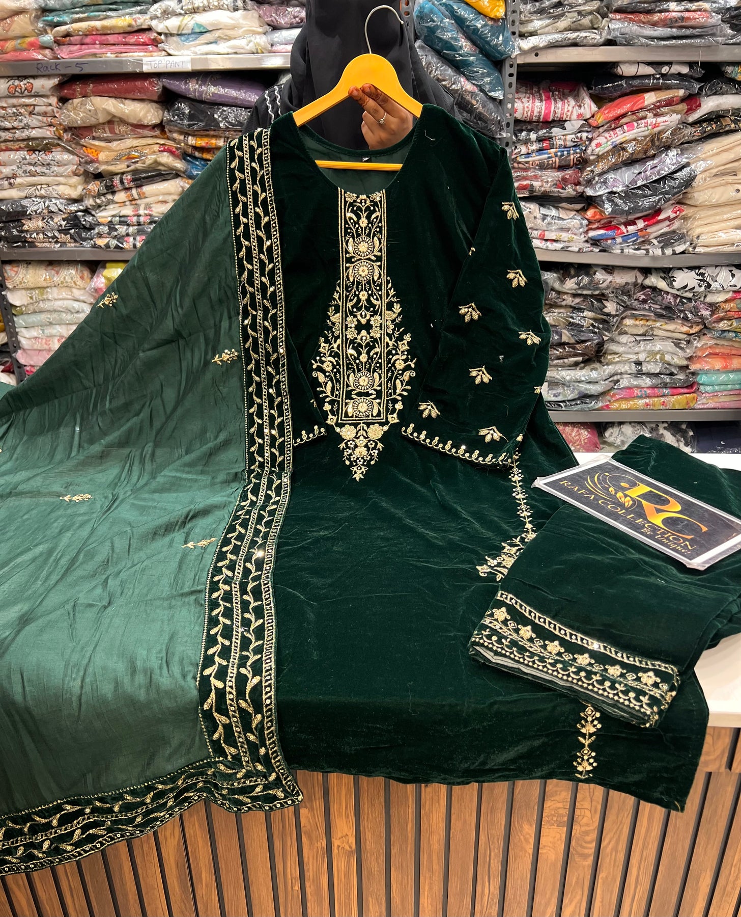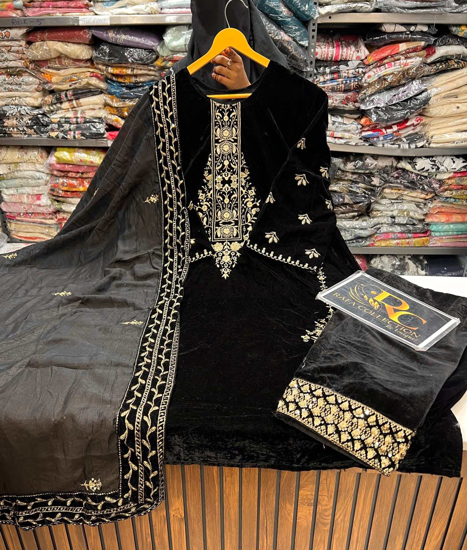 D no :- 2566 Experience the ultimate in luxury with our Velvet Collection featuring exquisite zari embroidery and intricate handwork. Elevate your wardrobe with this ready-to-wear collection that exudes elegance and sophistication. Discover the perfect combination of comfort and style, crafted with expert craftsmanship and attention to detail.
